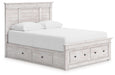 Makidern - Queen Panel Storage Bed With 2 Under Bed Storage Units And Storage Footboard - Whitewash