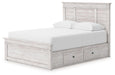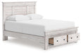 Makidern - Queen Panel Storage Bed With Under Bed Storage Unit - Whitewash