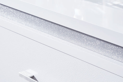 This dresser with mirror is a showstopper, bringing a touch of modern glamour to your sanctuary. A sleek white finish and inset glitter accents cre...