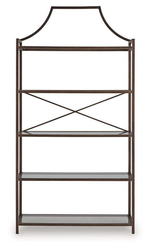 Classic design effortlessly blends with modern functionality in this elegant bookcase. Its antiqued bronze-tone finish adds a touch of warmth and s...