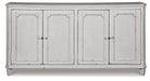 With its distressed vintage paint finish, fluted details and French provincial mouldings, this exquisite cabinet is sure to grace your space in such a très chic way. Adjustable shelved storage is abundantly practical, be it in a dining room, living room or entryway.