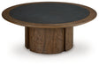 Refined design meets everyday ease with this table. A warm wood-tone finish beautifully frames the dark faux cement top, creating a sophisticated contrast that feels both modern and timeless. From morning coffee to evening entertaining, this streamlined piece nestles seamlessly with sectionals and modular sofas. And that’s how you pull your space together with designer flair.