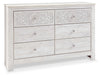 Paxberry - Six Drawer Dresser - Medallion Drawer Pulls - Whitewash